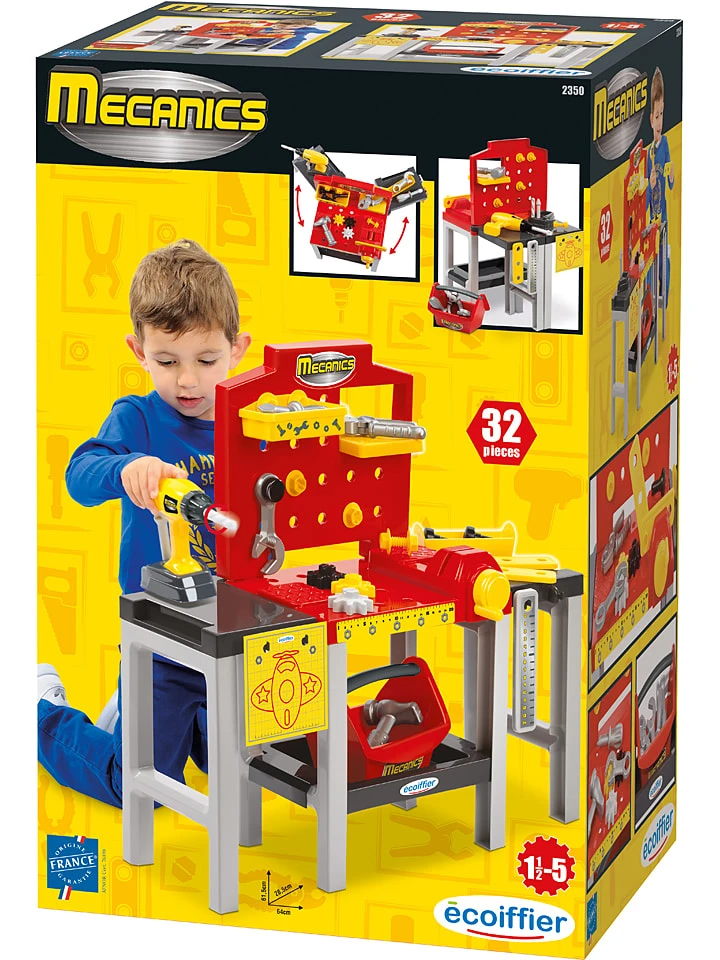 – Inhoud: werkbank, gereedschap (accuschroevendraaier met verwisselbare hulpstukken, schroevendraaier, liniaal, moersleutel en meer)