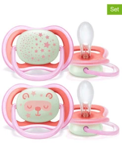 – 2 verpakkingen fopspenen à 2 stuks in verschillende kleuren